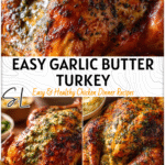 Keywords: easy garlic butter turkey, thanksgiving turkey, roast turkey, garlic turkey, holiday main, whole roasted turkey, holiday recipe