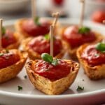 These heart-shaped Caprese skewers are a delightful and easy appetizer, perfect for Valentine’s Day or any festive occasion. Featuring juicy tomatoes, creamy mozzarella, and fragrant basil, all artfully arranged into charming heart shapes, they offer a pop of festive color and fresh flavor. This recipe is quick to prepare, versatile, and makes an impressive appetizer without spending hours in the kitchen.