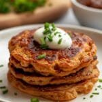 - Keep Warm and Serve: Transfer the cooked pancakes to a plate and keep them warm in a low oven (around 200°F) while you cook the remaining batter. Garnish with fresh chives or green onions, if desired, before serving.