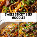 The first time I tasted Sweet & Sticky Beef Noodles, I remember sitting in a small corner booth at a bustling Asian restaurant, steam swirling from the wok as the chef tossed noodles in a glistening caramelized sauce. The aroma was mesmerizing—sweet soy mingled with garlic and sesame, wrapping the room in comfort. As I took the first bite, the chewy noodles coated in silky sauce and the tender beef melted together into something unforgettable. That moment sparked my love for this Sweet Noodle Recipe, inspiring me to recreate it at home. Since then, my version of Sweet & Sticky Beef Noodles has become a family staple, celebrated for its warm, rich flavor and that signature sticky glaze that defines so many beloved Asian Beef Noodle Recipes.